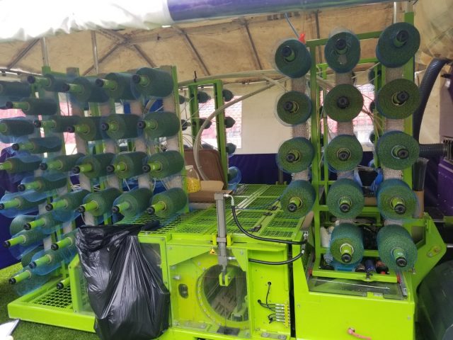 Being a member of Sports Turf Canada has it’s privileges. Attending yesterday’s annual general meeting at BMO Field gave us the opportunity to watch the installation of synthetic fibres into the natural turf, reinforcing the grass. The BMO grounds crew will have their work cut out for them with the new hybrid field, a popular trend around the world. Hybrid fields require different standards of maintenance than what has been done in the past, including cutting the field with push mowers.