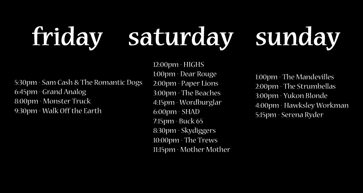 Check out a photo of the venue and the listing of the artists performing below! We are SO proud of Hawksley Workman, an artist raised right here in Huntsville, Ontario!